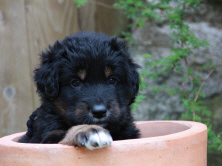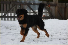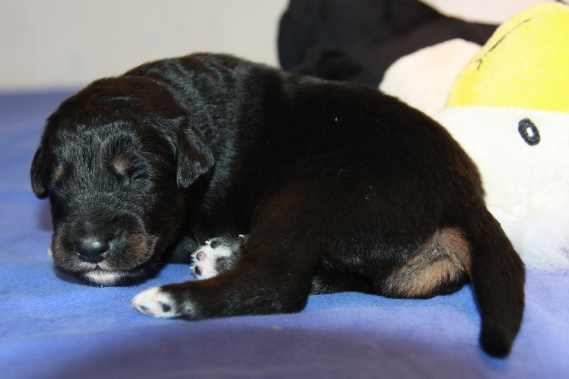 Aber unser Butch ist kein Amerikaner, sondern waschechter Franke. Und was für einer! Butch war von Anfang an der schwerste und größte Rüde seines Wurfes. Frech versucht er, bereits im Alter von ein paar Wochen, das Futter seiner Geschwister an sich zu reißen. Aber man muss keine Angst vor ihm haben: Seine vier weißen Pfoten und der weiße Schmetterling auf seiner Brust verraten bereits: Der Junge hat es zwar faustdick hinter den Ohren - ihm sitzt aber auch der Schalk im Nacken. Ein charismatischer Hund der bei aller Geschäftigkeit vor allem in Sachen Zuneigung große Freigiebigkeit an den Tag legt.